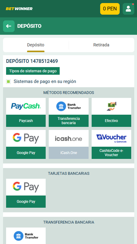 Los jugadores peruanos encontrarán diversas opciones para depositar y retirar dinero desde BetWinner. Independientemente de la opción que utilices, los depósitos son instantáneos, mientras que los retiros pueden variar.